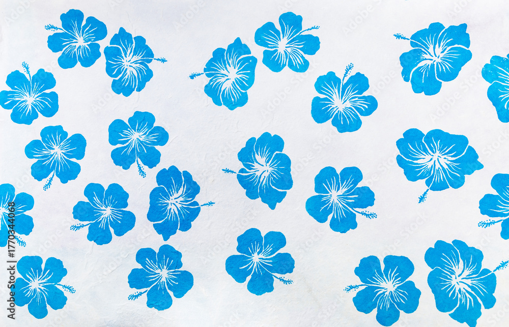 Blue hibiscus pattern flower on white paper background, paper with blue flower pattern background