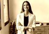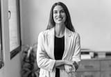 Beautiful businesswoman taking a break while looking at camera next to the window at the office.