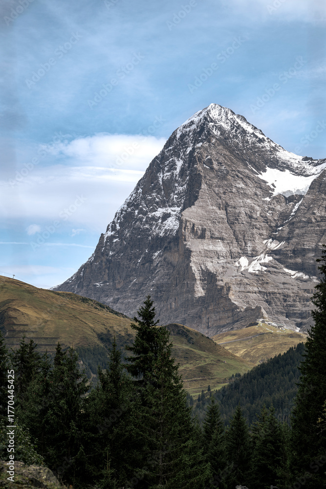 looking up to the mountains, in the Berner Alps, Switzerland, Eiger Mountain, stunning panoramic view