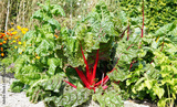 Sunlit Chard growing in a kitchen garden, Cumbria, England