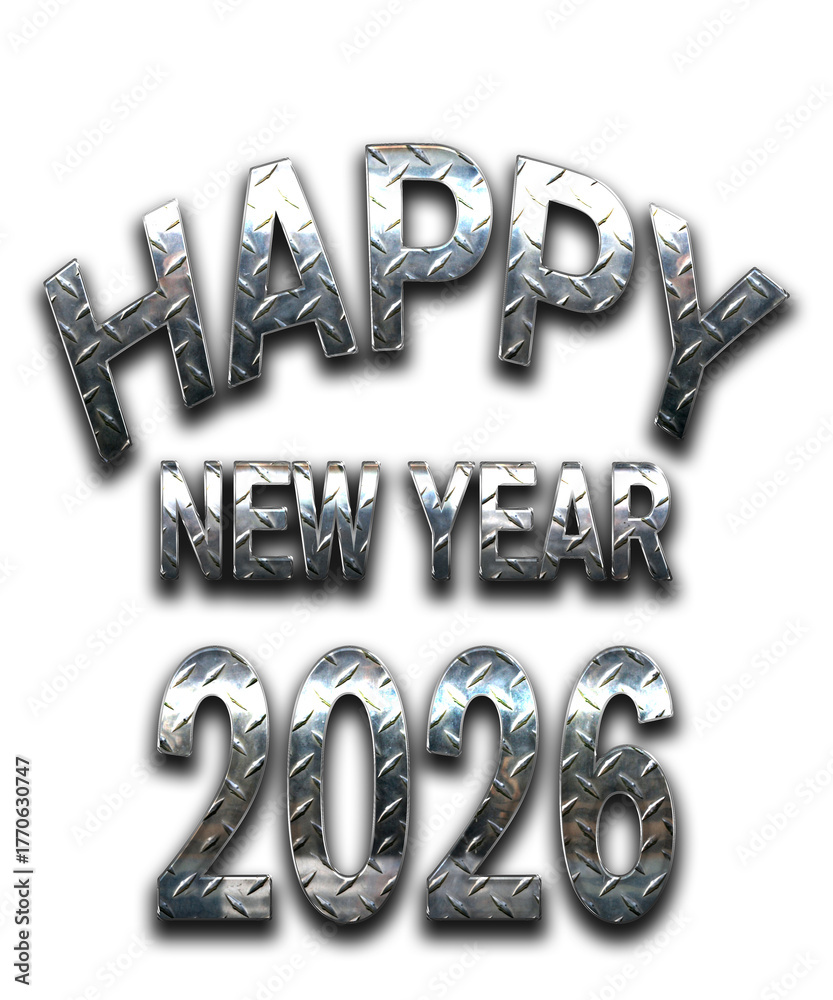Textually rendered happy new year 2026 with a metallic textured effect isolated on transparent background