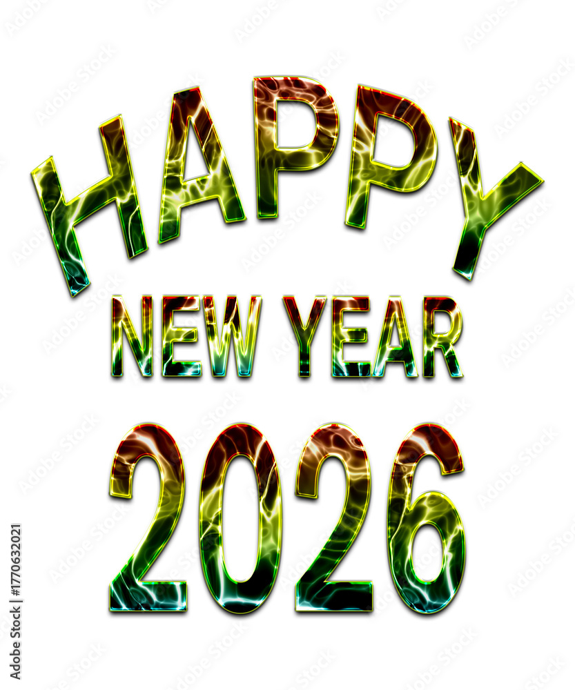 Colorful abstract textured text happy new year 2026 with a vibrant glowing effect isolated on transparent background