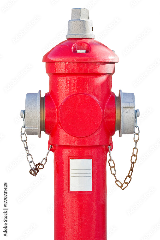 Metal red paint fire hydrant in a urban area - concept isolated on white for easy selection