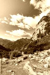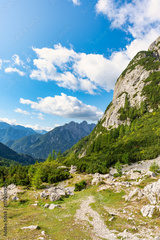 High mountain landscape with rock peaks high in the Julian Alps as it passes through Vrsic, Slovenia.