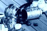 Old metal bowl with aroma coffee beens