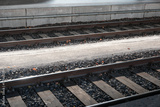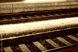 The train tracks are made of wood and rocks