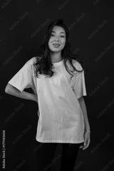 White shirt in studio, Versatile mockup of confident model in white T shirt highlighting fabric