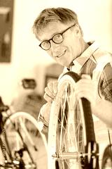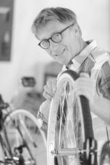 handsome mature man repairing his bike