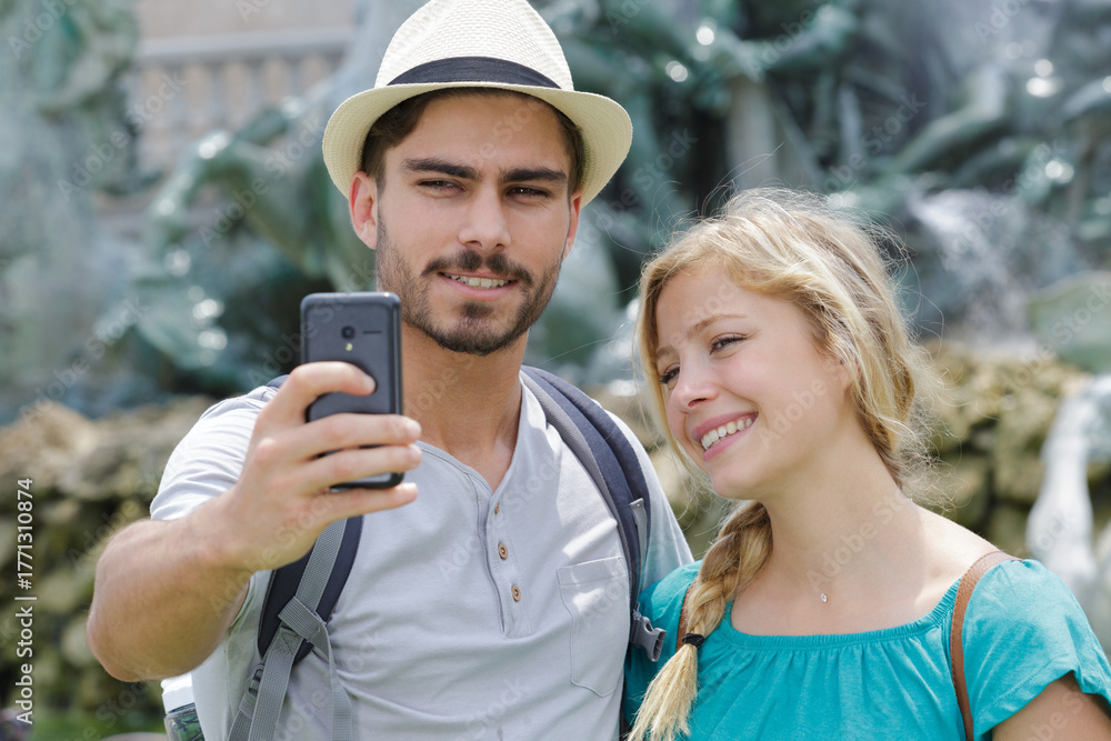 couple selfie happily with the blue sky