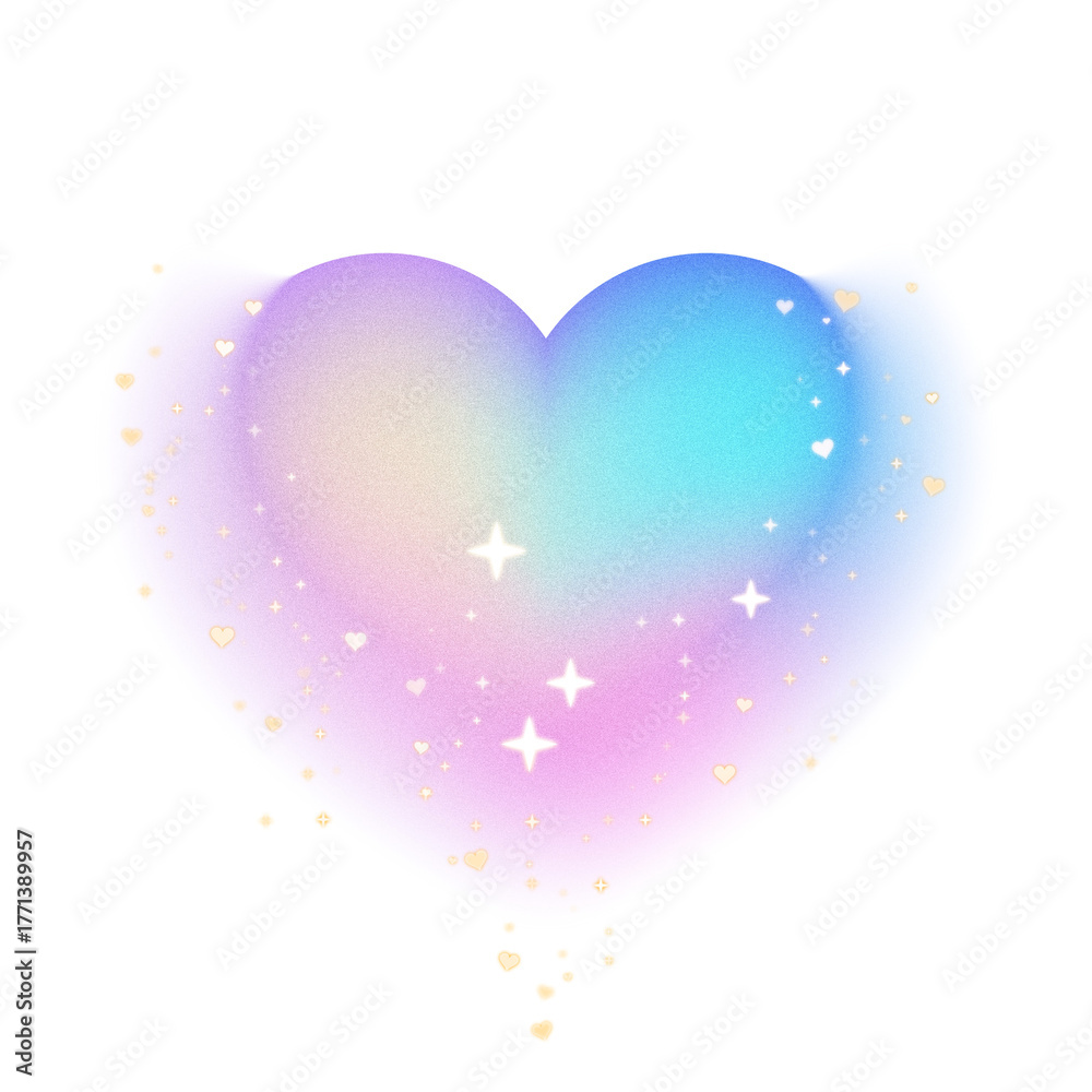 3d holo pastel blue pink gradient blurred heart with glow star glittering confetti decoration