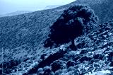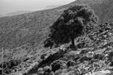 Scenic hillside view with tree overlooking coastal landscape in Crete, Greece