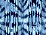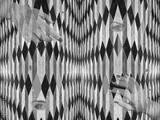 Surreal composition of human hands and eyes inside geometric black and white rhombus pattern with vivid colors, symbol of perception, illusion and inner vision