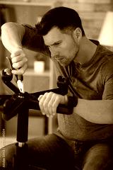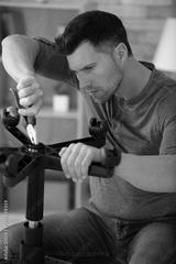 man repairing a chair by hand