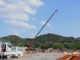 A panoramic view of the construction site within the forest of the public sports park.
