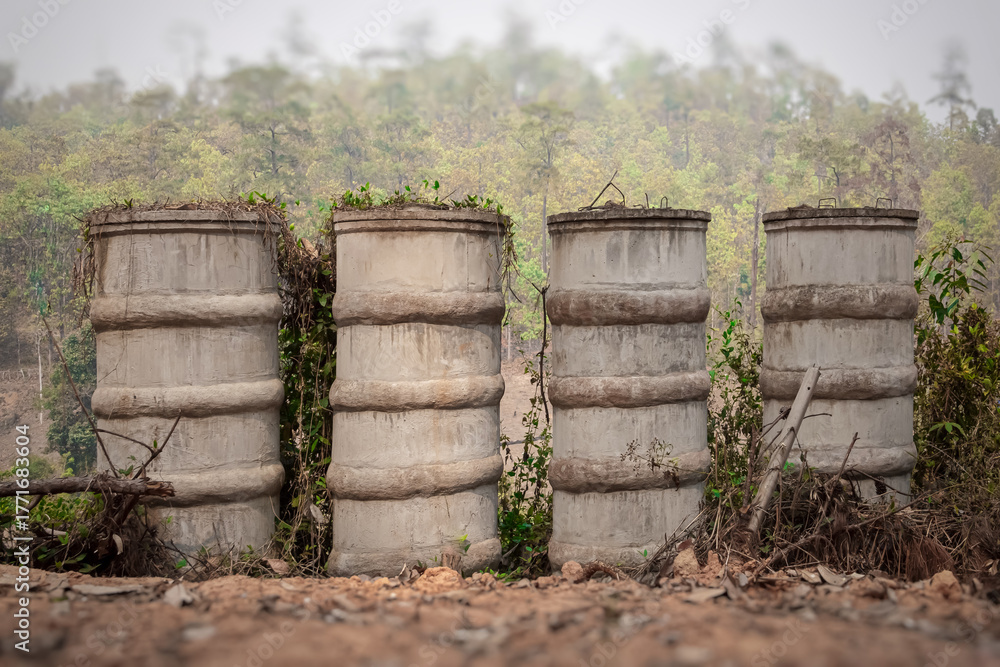 Cement water storage tank on a hill