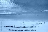 Aerial top view of turquoise sea bay with colorful beach umbrella on the tropical beach at Kata Beach, one of the popular summer destinations in Phuket, Thailand.