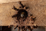 macro photograph of a native stingless bee from the Peruvian Amazon, Melipona illota, one of the species that produces medicinal honey and is conserved by native communities of the Peruvian Amazon