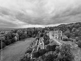 Autumn colours over Powis Castle and Garden from drone, Welshpool, Powys, Wales, England