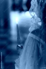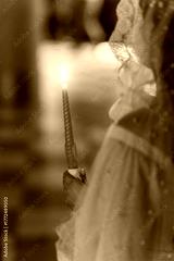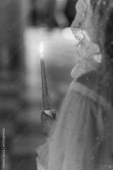 Burning wedding candle in bride's hands during Orthodox ceremony