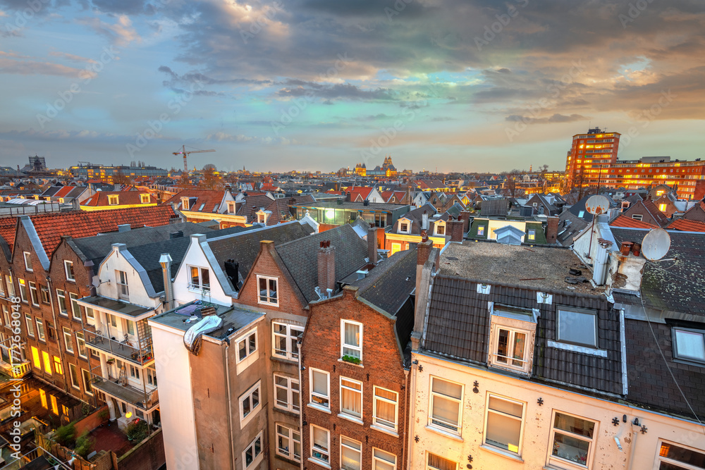 Amsterdam, Netherlands view of the cityscape from De Pijp