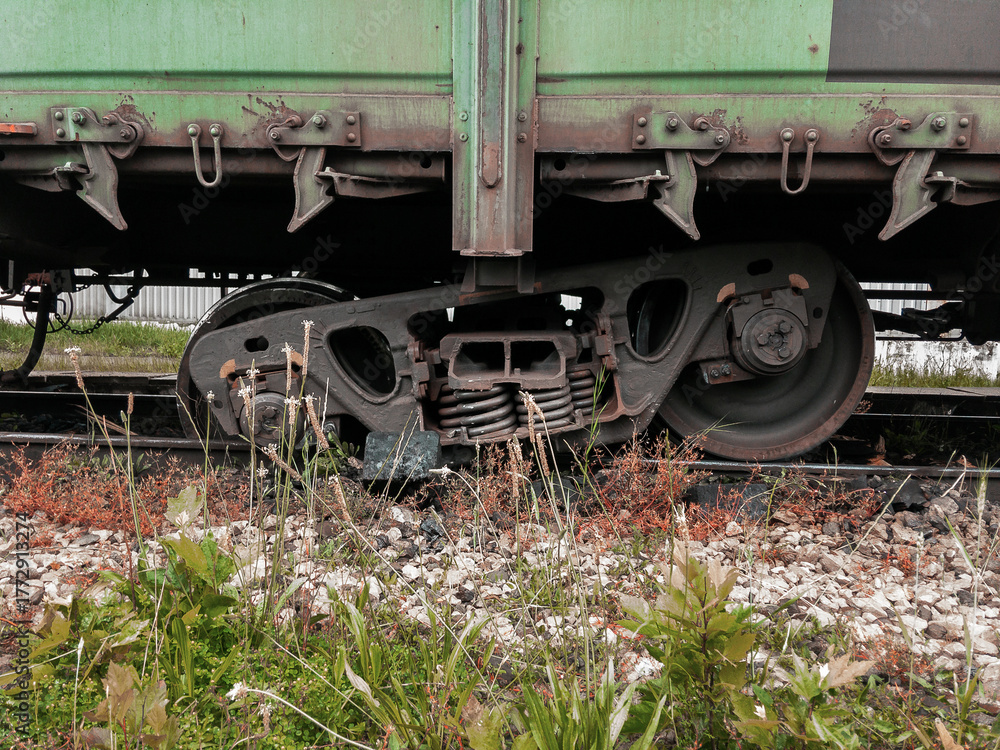 An accident on the railroad. A derailed carriage. A railway carriage that derailed on a sunny day. Derailment of railway wagons. As a result of the train accident, the train derailed.