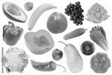 Healthy Food Composition of Mixed Fresh Produce Rich in Vitamins and Nutrients Isolated on White