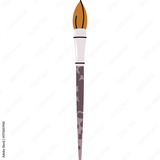 A realistic illustration of a paint brush with a white handle and brown bristles set against a transparent background ideal for art and design projects