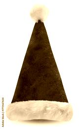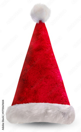 Red Santa hat with a fluffy white trim and pom-pom ideal for a Christmas party and Happy new year on white background with clipping path.
