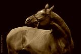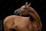 Bay arabian horse on black background isolated