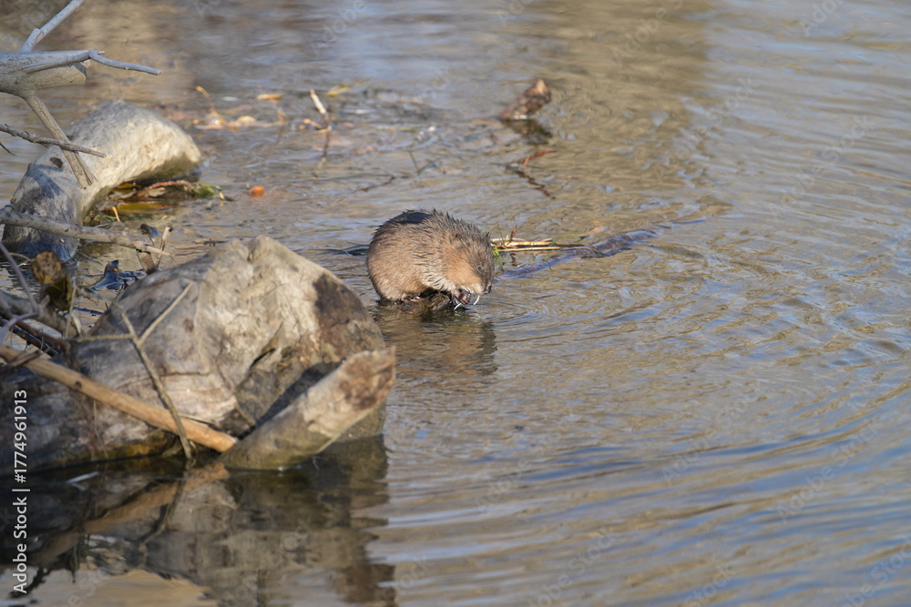 muskrat in the pond, muskrats feed on vegetation, river, nature, wild, wildlife, Canada, Alberta
