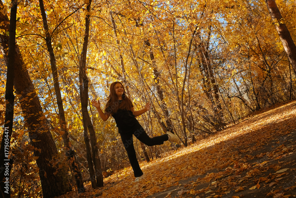 Happy young girl enjoying walking, dancing, jumping. Freestyle. Freedom and carefree. Individuality, alternative lifestyle. Activity summer vacations. Lifestyle photography. Blurred motion. October