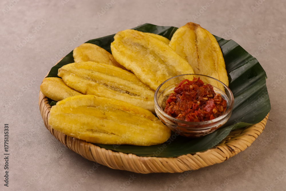 Pisang Peppe Sambal Trasi is Traditional Indonesian Food from Makasar, Sulawesi Selatan made from fried banana.