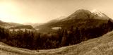 Meadow with road and bench during sunset in Berchtesgaden National Park