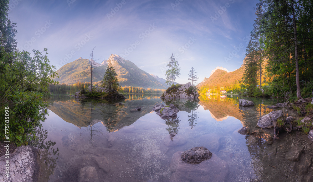 View of Hintersee lake in Berchtesgaden National Park Bavarian Alps, Germany