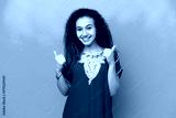 Young Arab woman isolated on blue background with thumbs up gesture and smiling
