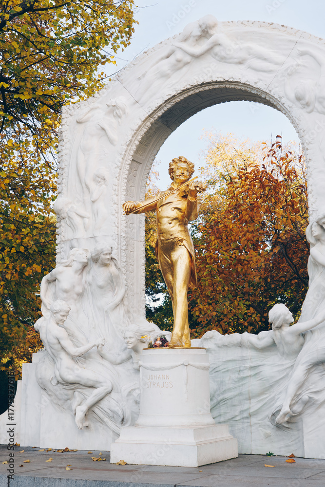 Public Johann Strauss Monument in Vienna Stadtpark during Autumn