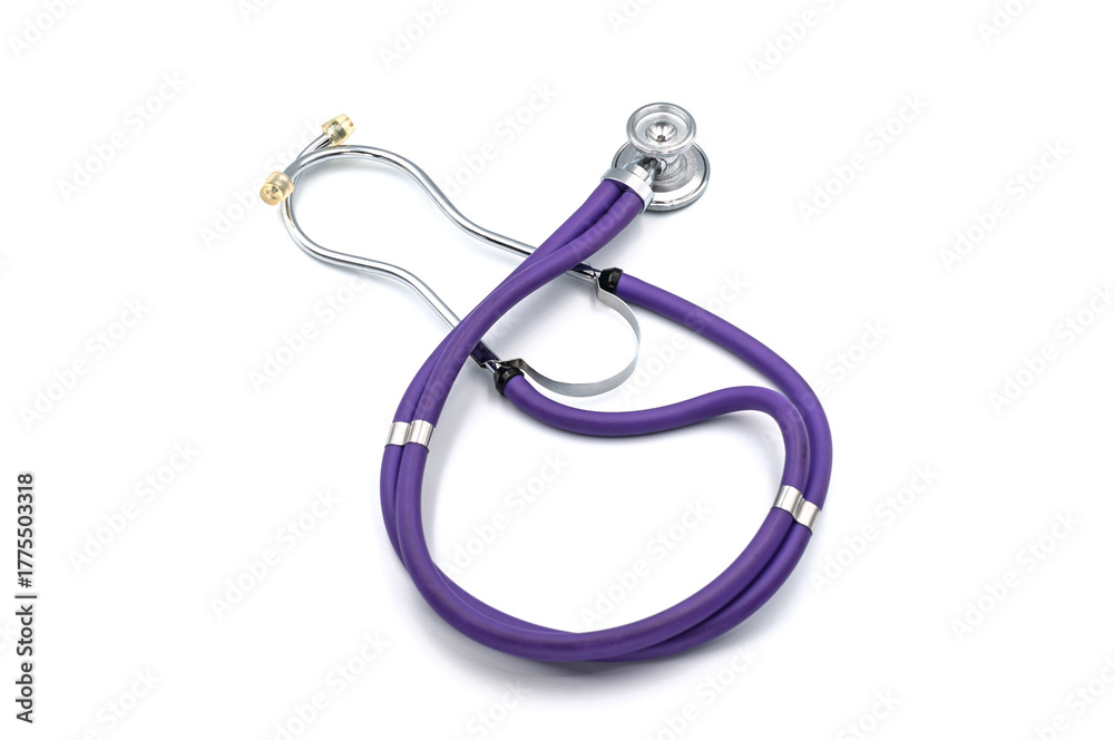 Stethoscope on a white background. Medical diagnostic instrument for auscultation. Phonendoscope.