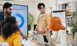 Multi-ethnic business team in office meeting, reviewing documents and brainstorming innovative ideas for a new business venture and strategy.