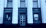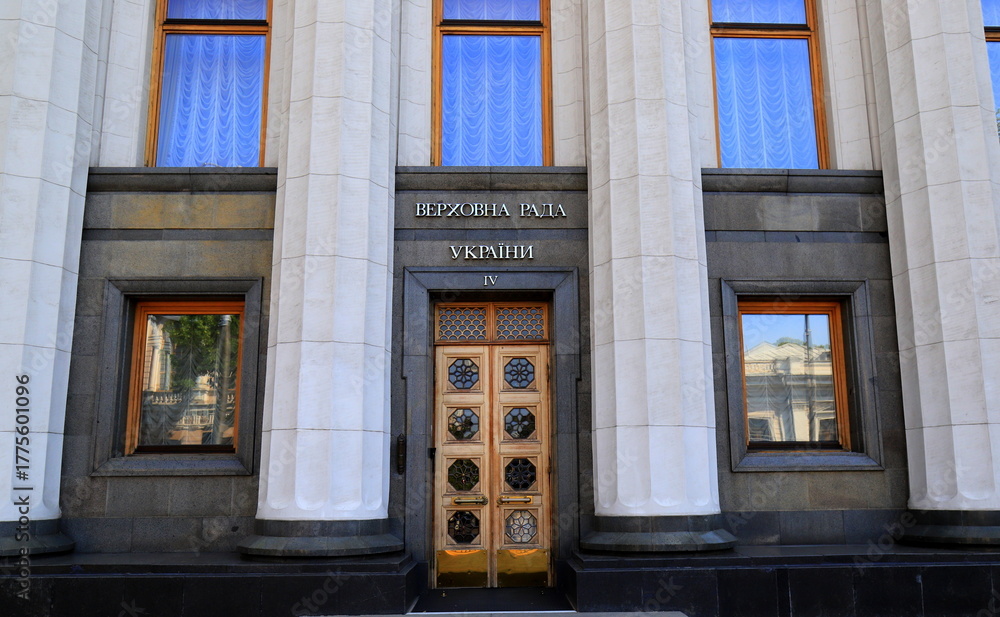 Verkhovna Rada of Ukraine. The building of Ukrainian Parliament in Kyiv with inscription in Ukrainian - the Supreme Council of Ukraine. Kiev, Ukraine,