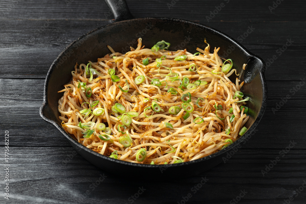 Stir Fry Bean Sprouts with garlic, soy sauce and spring onion