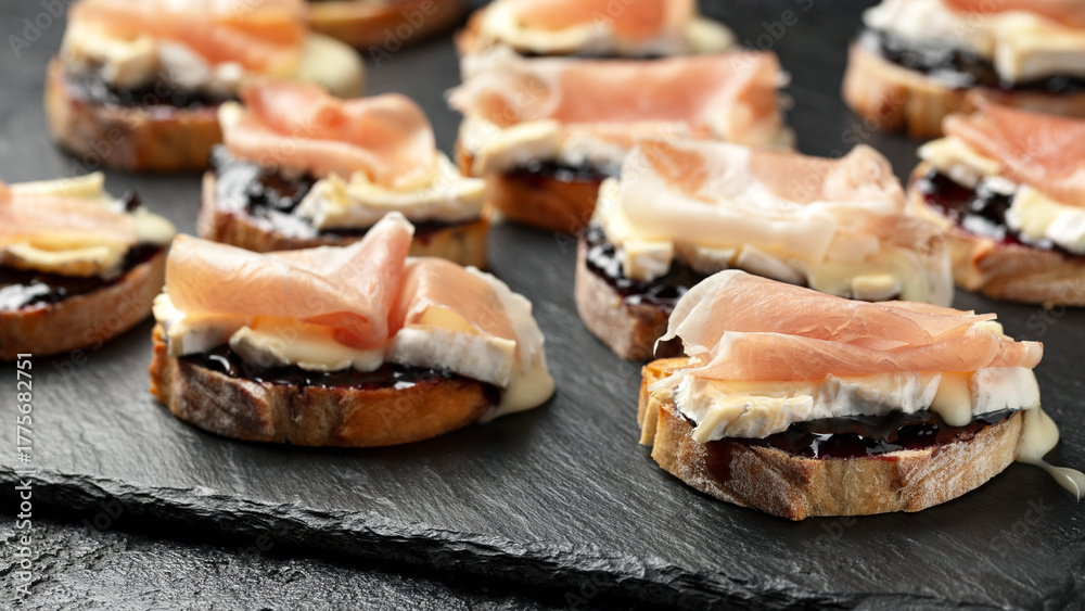 Blueberry Camembert Prosciutto Bruschetta or Toasts. Party Food