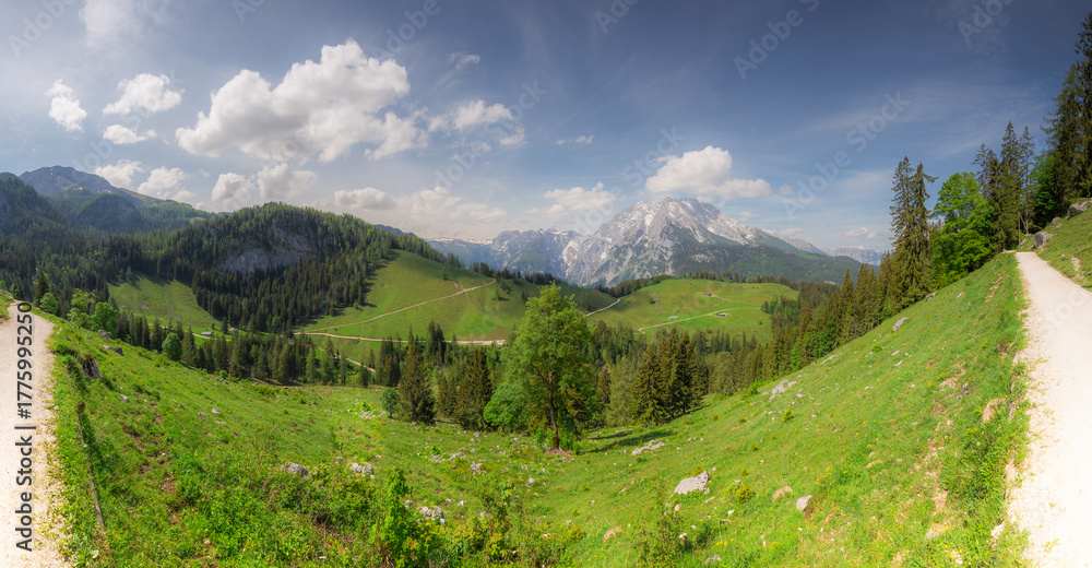 Mountain valley with tracks near Jenner mount in Berchtesgaden National Park