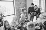 Funny thanksgiving feast at bright modern home with turkey smiles and shared joy among parents children grandparents and friends family gathering