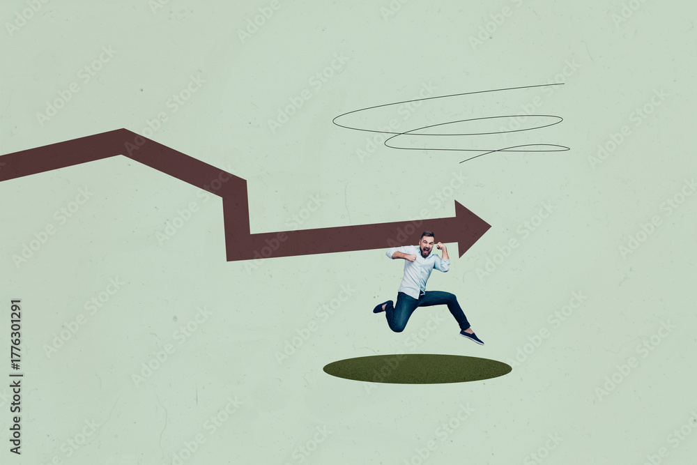 Financial Business Success Collage Showing Happy person With Upward Arrow Symbolizing Money Trading Growth Stats