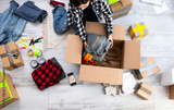 Girl Packing Cardboard Boxes And Girl Packing Cardboard Boxes