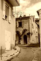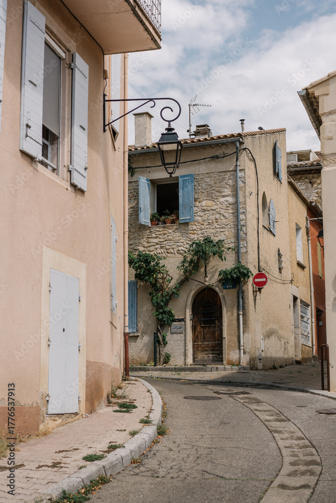 Cozy street of old Provençal town in soft sunset light, romantic Mediterranean atmosphere.