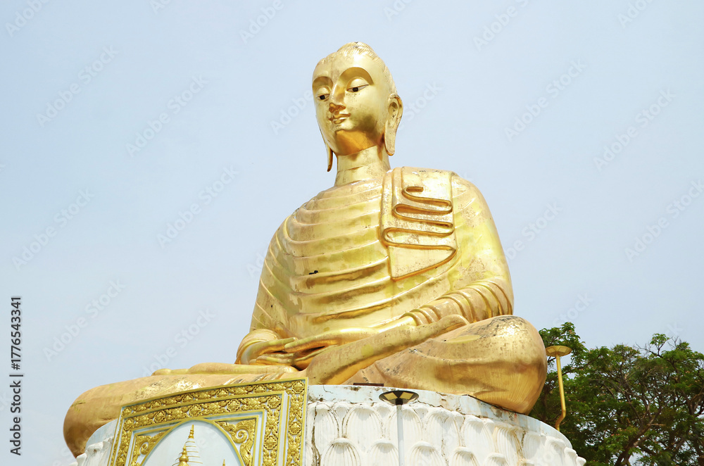 Massive Gilded Lord Buddha Image Named Phra Phut Takitti Sirichai at Wat Tang Sai Buddhist Temple, Located on Thongchai Mountaintop in Prachuap Khiri Khan Province, Thailand