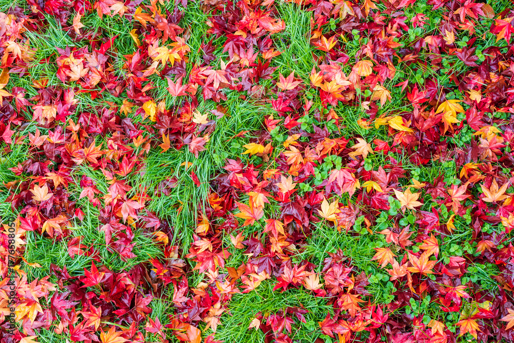 red and green leaves in autumn, foliage