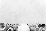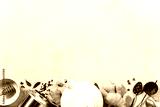 Tea Ingredients and Teapot with Ample Copy Space on Light Background