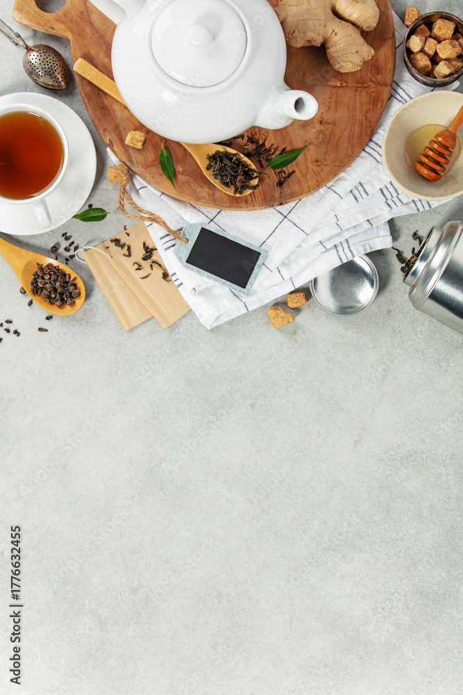 Tea Preparation Scene with Natural Ingredients and Copy Space